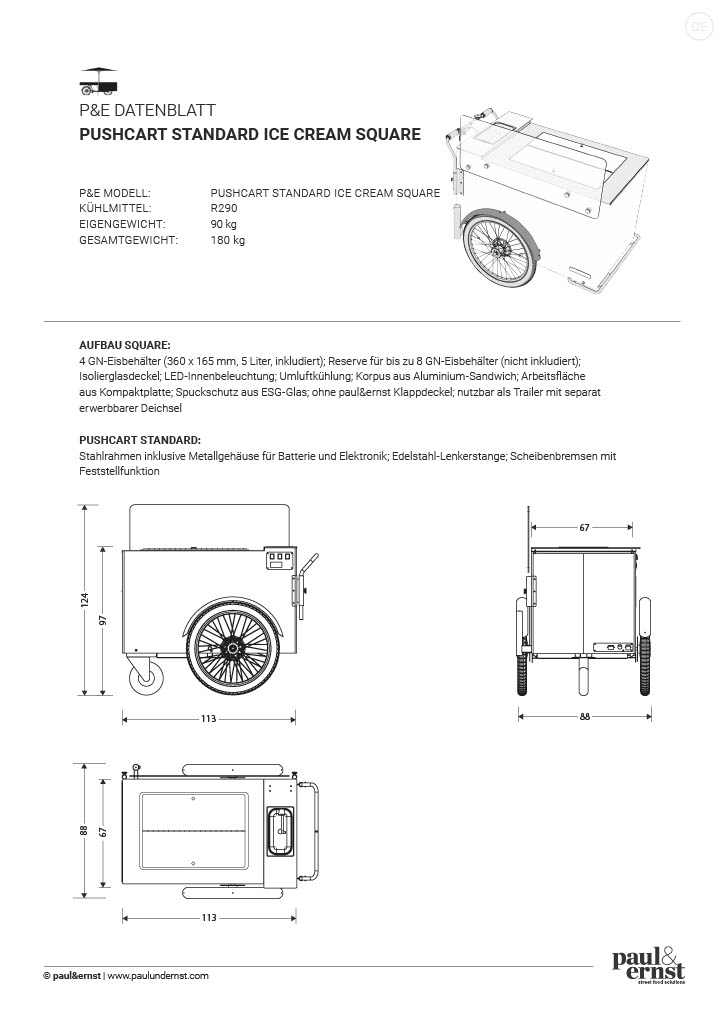 Die Square-Einheit sorgt dank Isolierglasdeckeln dafür, dass das Eis stets sichtbar bleibt. Die Pozzetti-Einheit besticht durch ihre elegante Präsentation und bietet dank exzellenter Isolierung hohe Widerstandsfähigkeit gegen äußere Einflüsse. Das stilvolle Design eines Eiswagens oder Eisfahrrads zieht garantiert alle Blicke auf sich. Ob du einen Eiswagen oder ein Eisfahrrad bevorzugst – hier kannst du die Modelle von paul&ernst direkt vergleichen.