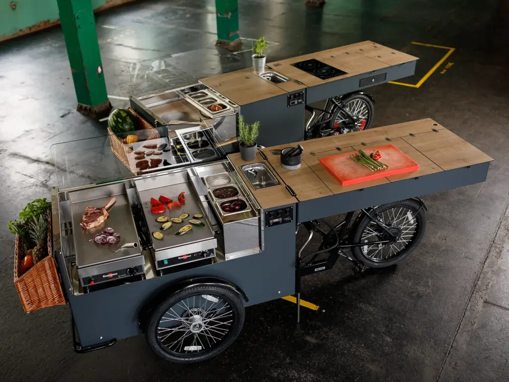 paul&ernst überzeugt mit einer vielfältigen Auswahl an Gastro Bikes, die durch ihre besondere Flexibilität und Individualität herausstechen. Die praktische, aufklappbare Arbeitsfläche und die nahezu unbegrenzten Branding-Möglichkeiten bieten dir außergewöhnliche Gestaltungsfreiheit. Wähle das Modell, das perfekt zu dir passt, und gestalte dein ganz persönliches Street Food Bike ganz nach deinen Wünschen!