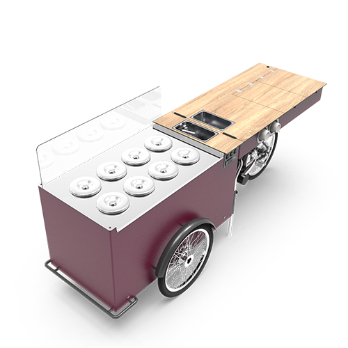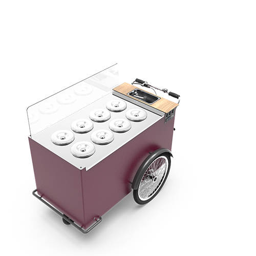 Mit dem Pozzetti-Bike vermittelst du den Charme klassischer italienischer Gelatokultur: handgemachtes, hochwertiges Eis – frisch und authentisch präsentiert. Das Bike bietet Platz für acht verschiedene Sorten (bei der Square-Variante sechs Sorten) und sorgt dank des speziellen Pozzetti-Röhrensystems für eine besonders effiziente und konstante Kühlung.